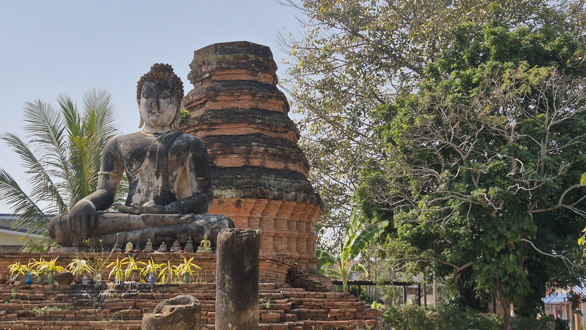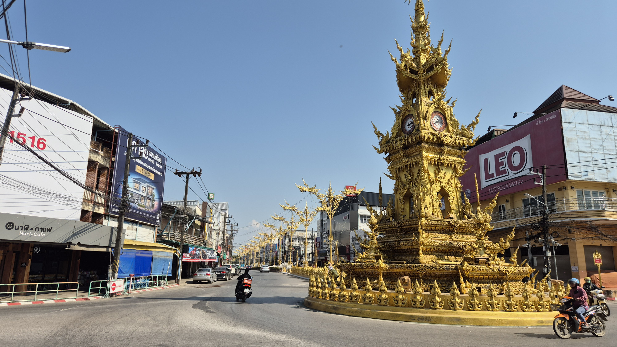 Die Reise nach Chiang Rai war sehr bequem. Wir logierten im Chiang Rai Hotel, in dem alle Zimmertüren in einen Innenhof und die Fenster nach außen zeigten. Da wir im 4. Stock waren, genossen wir einen Blick über die Stad mit vielen Baumwipfeln. Einmal mehr waren wir in einem angenehmen Quartier der Stadt gelandet, d.h. gutes Frühstück, feines Essen, Motorrad mieten und dies alles in Fuß Distanz.