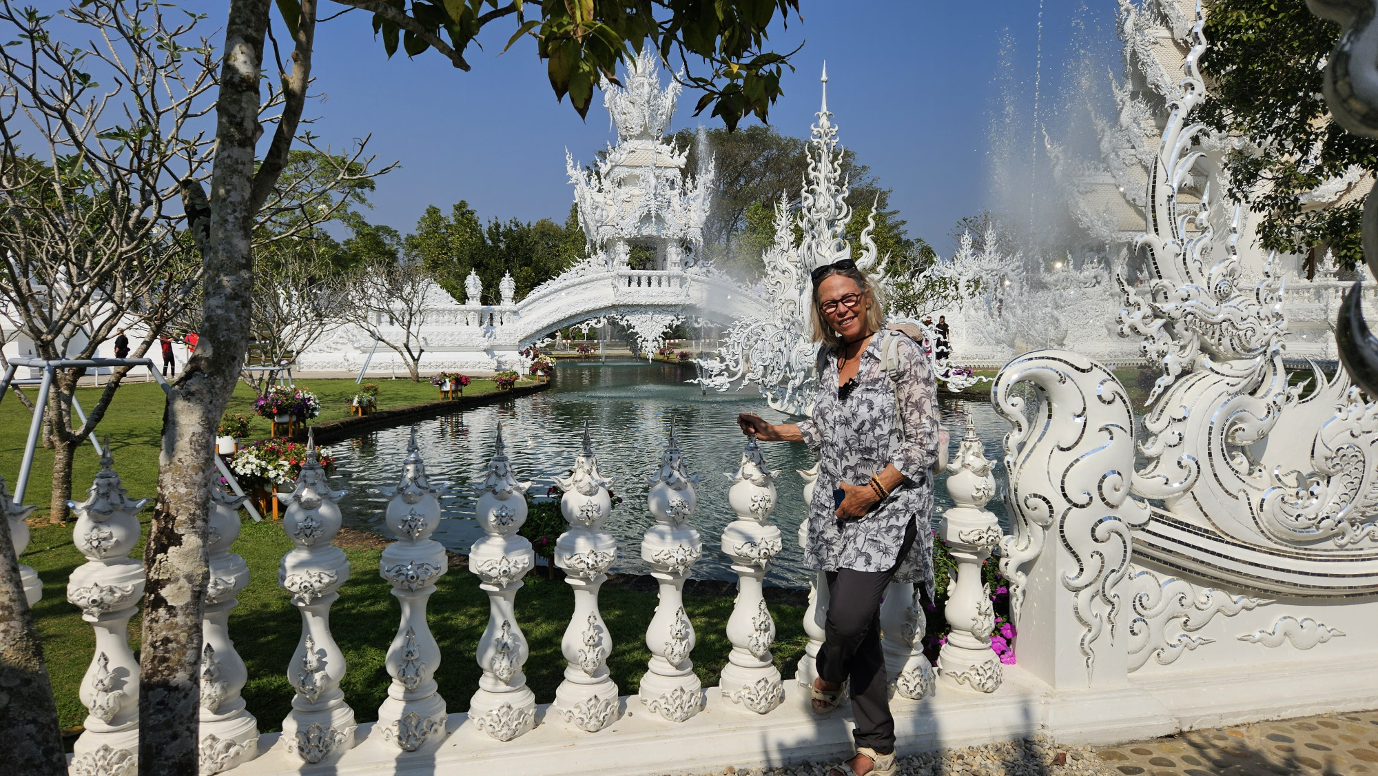 Am 1.2. fuhren wir los und besuchten den, wunderschönen sehr zu empfehlenden, Kunstpark Mae Fah Luang Art der in einer riesigen Parkanlage mit uralten Bäumen liegt. Viele Werke sind von der thailändischen Prinzessin. Es steckt enorm viel Geld in diesem Anwesen, dementsprechend ist eine sehr hohe Qualität der Kunst zu präsentiert. Zum Glück wissen dies nur wenige, so waren wir praktisch allein unterwegs. Wir fuhren weiter zu einem sehr kurzen Besuch der von asiatischen Touristen überfluteten weißen Tempelanlage Wat Rong Khun.