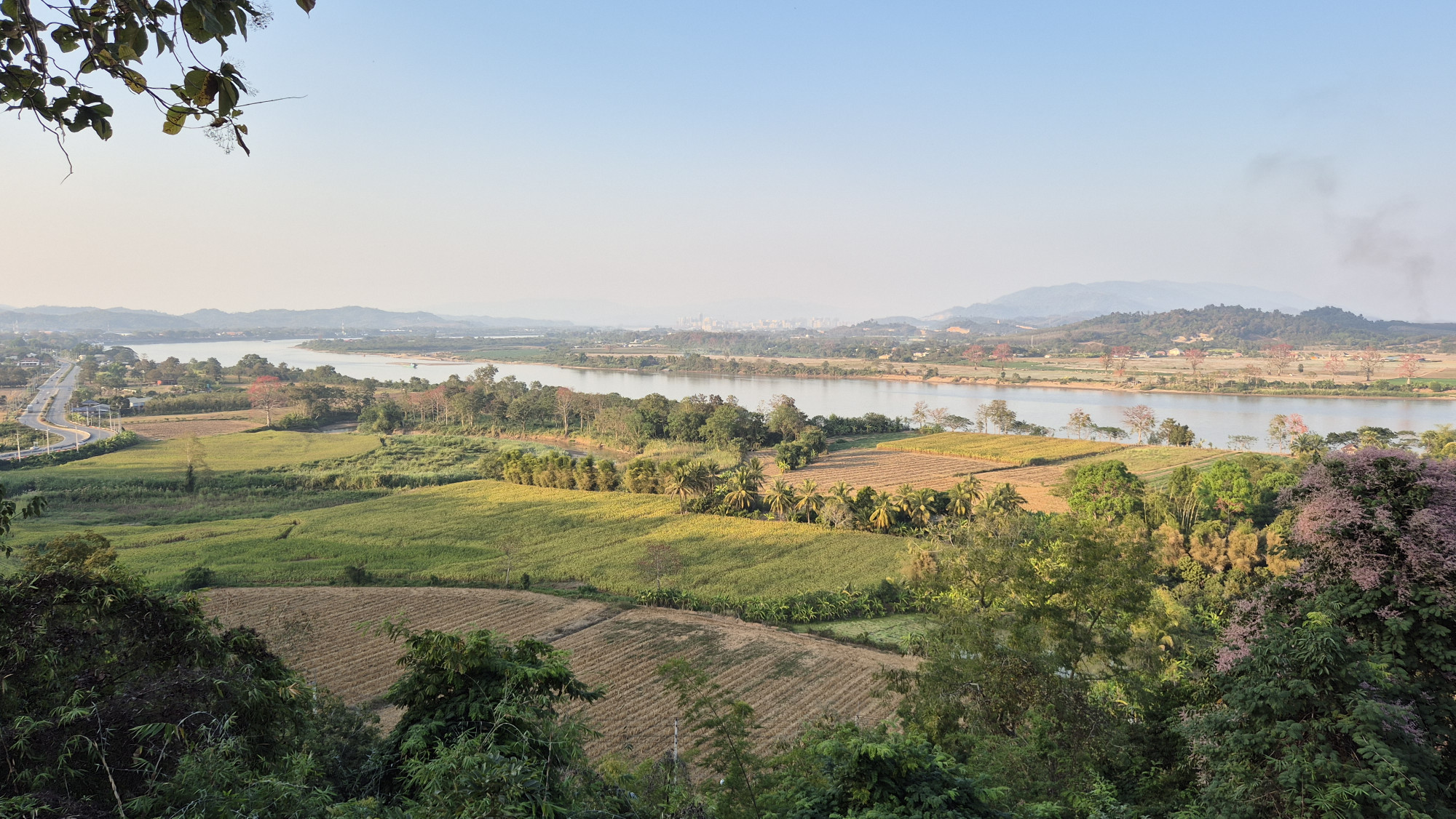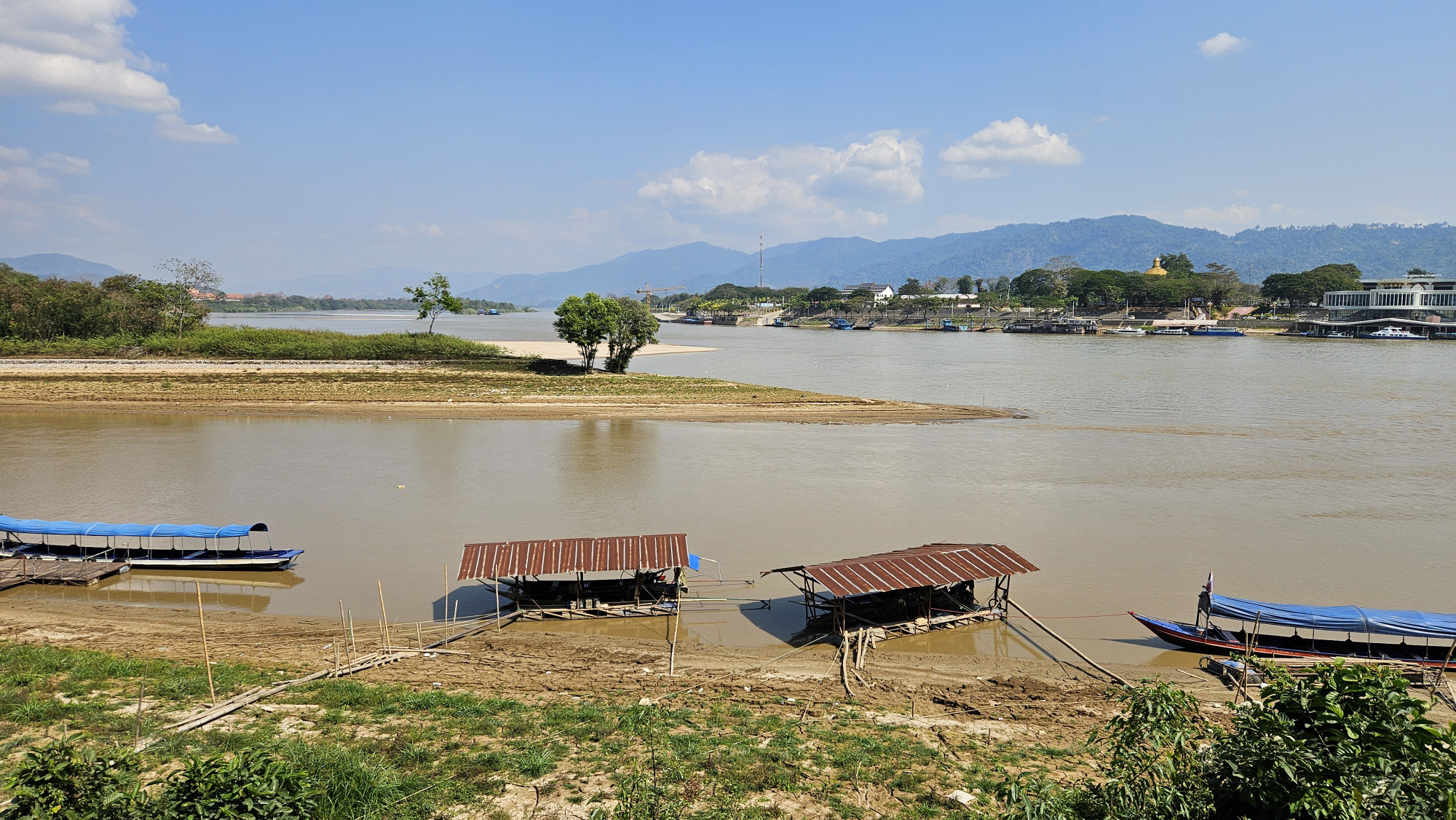 Anschließend kehrten wir in ein kleines Restaurant mit Blick auf den Mekong ein und schauten hinüber auf das Dreiländereck. Heutzutage ist dieses Dreiländereck eher ein 4 Länder Eck. Später erfuhren wir von einem finnischen Konsul Mann, der 8 Jahre lang in China zuständig war um die Visa für den Shengenraum auszustellen. Ciniesische Investoren aus Hong Kong pachteten von Laos für 99 Jahre ein riesiges Stück Land. Dort wurde mit Chinesen und chinesischem Material etc. ein Las Vegas aus der Erde gestampft. Einerseits (kleines Macau) um Geld zu waschen und andererseits werden junge IT begabte Menschen geködert um dort zu arbeiten. Es wird ihnen die Reise und alles bezahlt, ein großer Lohn versprochen, sobald sie dort sind, müssen sie den Pass abgeben und werden quasi in dieser Welt gefangen gehalten. Grund Cyberkriminalität. Schlimm, moderne Sklaverei.