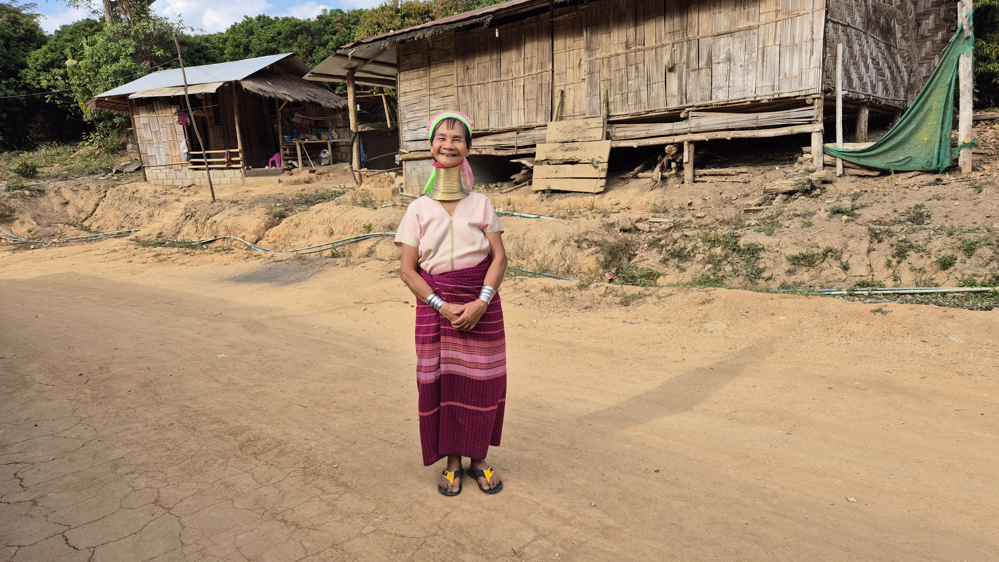 Im bereits gebuchten M2 Apartement Hotel war das Personal zwar sehr distanziert und eher unangenehm aber das Hotel erfüllte trotzdem für eine Nacht seinen Zweck.  Wir mieteten am Tag der Ankunft gleich ein Motorrad und besuchten, nach einigem Suchen, die weit in einem Tal hinten lebenden „Neckringfrauen“. Diese Frauen sind Flüchtlinge aus Myanmar. Leider sind sie in Thailand nur geduldet, da sie eine Touristenattraktion sind, durften sie bleiben.  Wir kauften ein paar Handarbeiten und spendeten zusätzlich einen Batzen in die Dorfkasse.  Wohl wissend, dass diese Frauen nebst ihren Familien, auch ihre Männer im Krieg unterstützten. Viele ethnische Minderheiten werden immer noch täglich in Myanmar verfolgt. Die beeindruckenden Hals Ringe wirken als ob sie den Hals verlängern würden. Sie drücken jedoch das Brustbein, das Schlüsselbein sowie die Rippen nach unter. Der Sage nach entstand dieser Brauch, als bei einem Stamm eine junge Frau von einem Tiger am Hals zu Tode gebissen wurde. Dies war dem Häuptling eine Lehre, von da an mussten alle Frauen von Jung an Halsringe tragen.