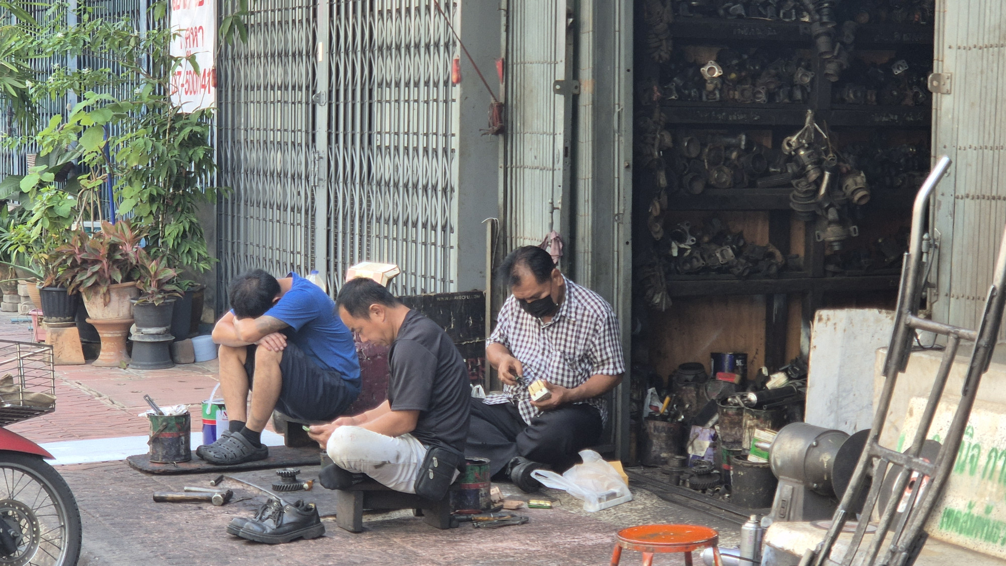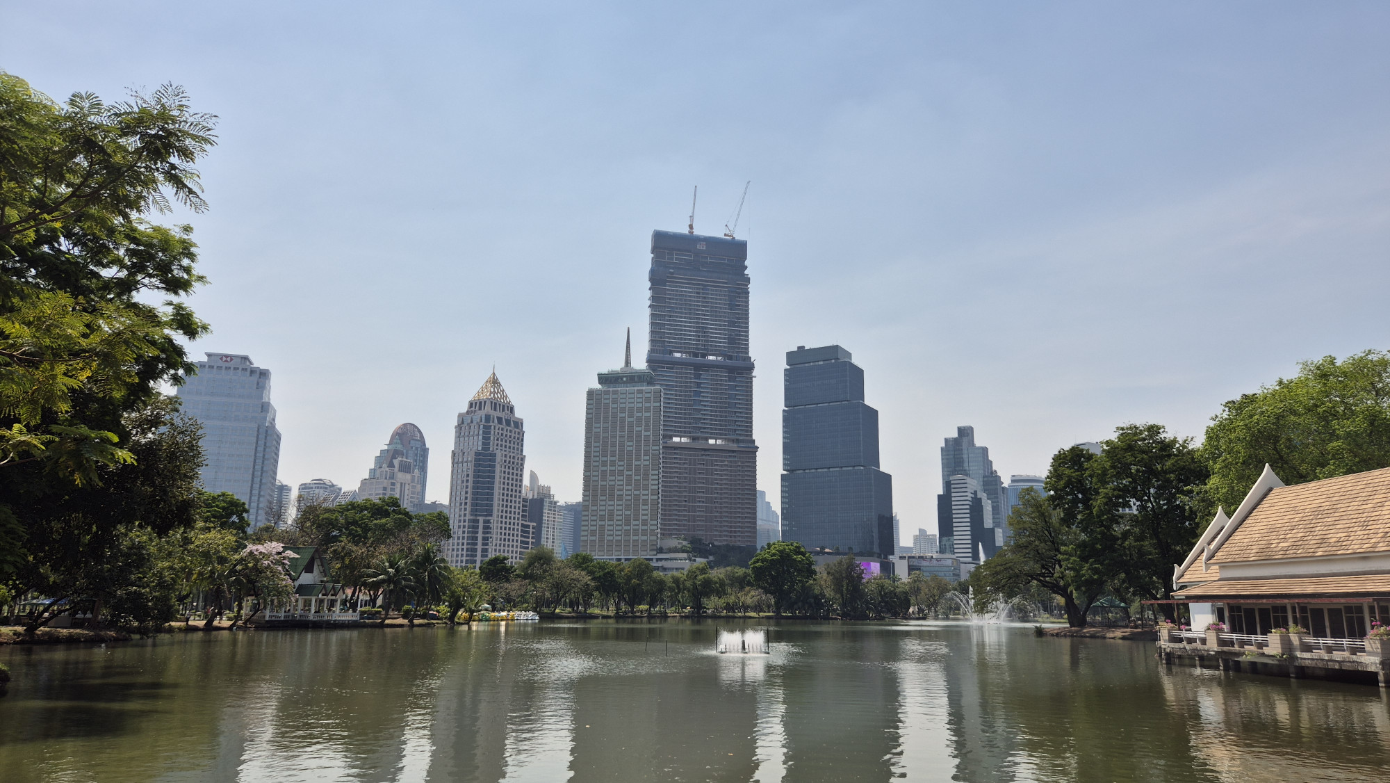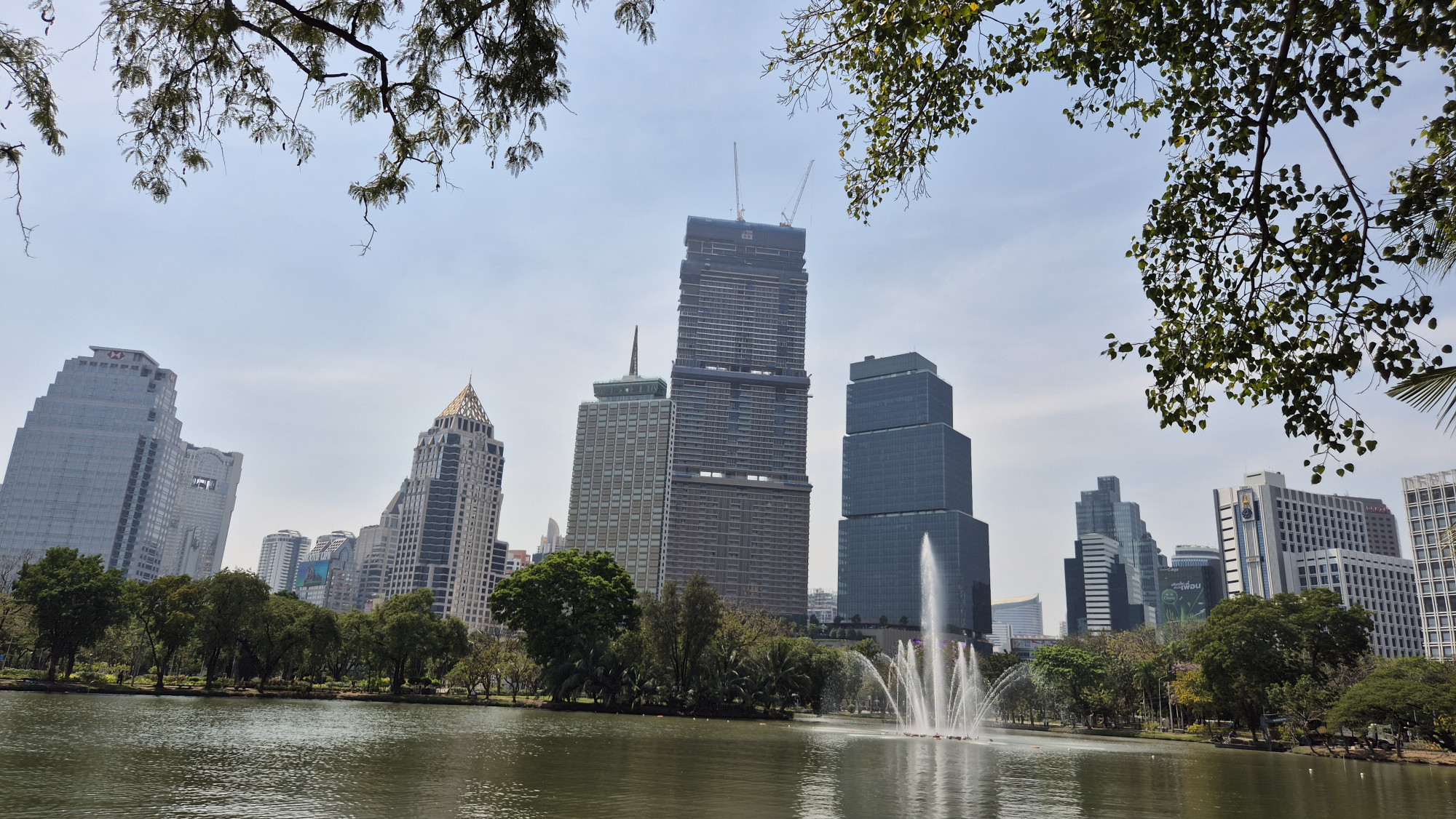 Bangkok erreichten wir am 8.2. per Flugzeug. Zum Glück hatten wir ein angenehmes Hotel I Cheque Inn mit Swimmingpool und einem riesigen Zimmer gen Süden gebucht. Dieses lag in einem ruhigen Wohnquartier weit ab vom Touristenrummel und nahe der Metro.  Am ersten Abend war gleich nebenan, unter der Autobahn, ein Jahrmarkt. Dies kam uns sehr gelegen und somit aßen wir praktisch vor der Haustüre zu Abend.