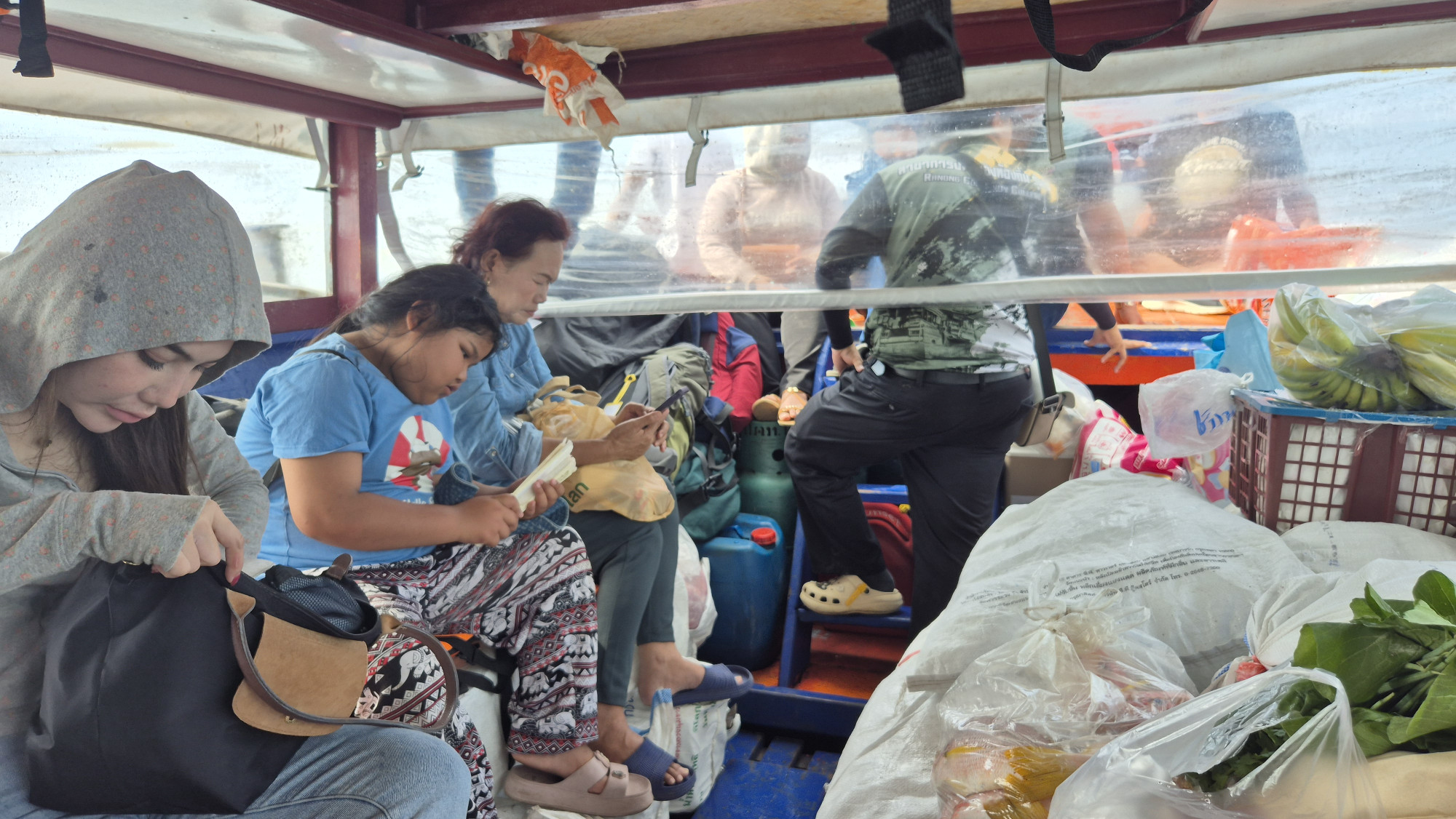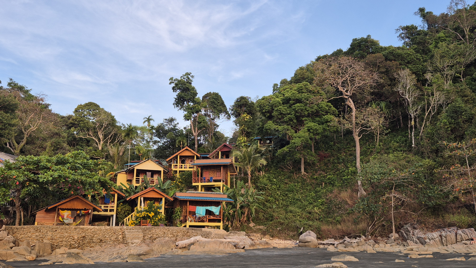 Vom 14.-21.2. logierten wir auf der Insel Ko Chang Ranong, nicht zu verwechseln mit der gleinamigen im Osten und im Golf von Thailand. Die Fahrt war wieder einmal sehr spektakulär. Ein Versorgungsboot, das zusätzlich noch ein paar Menschen mitnimmt. Vollbeladen mit Eisbrocken, Fischen, Lebensmittel, alles was so eine Insel benötigt und wir vielen Menschen mit viel Gepäck. Auf der Insel angekommen wurden wir einzeln auf je ein Motorroller geladen, Martin mit beiden Rücksäcken und dann quer über die Insel zu Mamas Bungalow gebracht. Im lauschigen Bambushäuschen Nr. 11 erholten wir uns für eine Woche. Wir hatten einen herrlichen Blick über die ganze Buch und nur ein paar Schritte bis zum Restaurant. Schwimmen, fein essen, bisschen im Dschungel wandern, die Insel mit einem Motorrad erkunden und einfach Sein. Die letzten Tage unserer Reise vergingen im Nu.