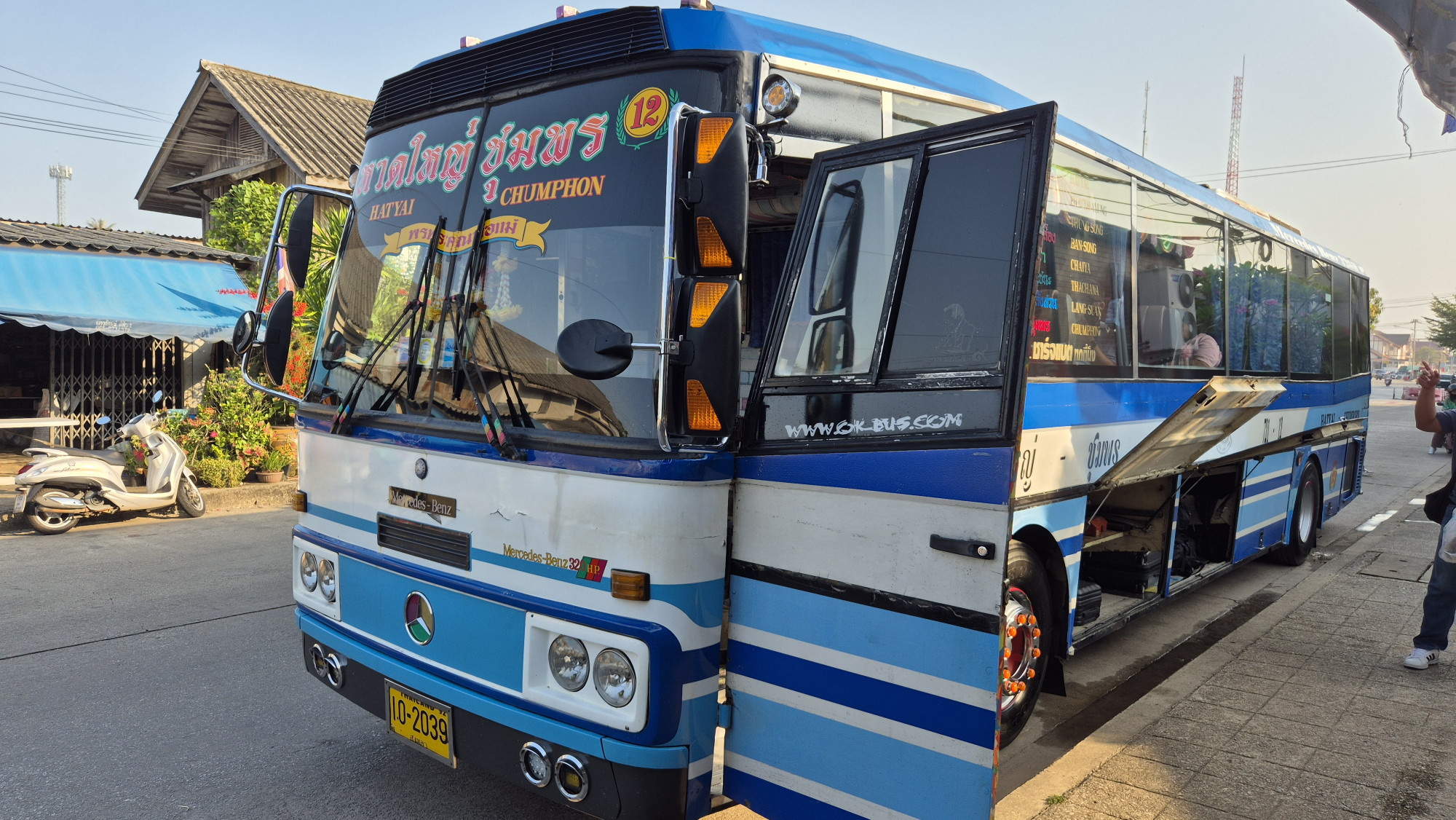 Dann am 12.2. gings zügig gegen Süden nach Chumphon. Langsam lief uns die Zeit davon. Die Busfahrt musste verdient werden. Nach 7 Std. Fahrt zerquetscht es jeden noch so sitzfreundlichen Po. Dafür war das Hotelzimmer im Chumphon Garden Hotel der Hammer. Riesig und sehr luxuriös mit Frühstück. Essen und Schwupps ins Bett.