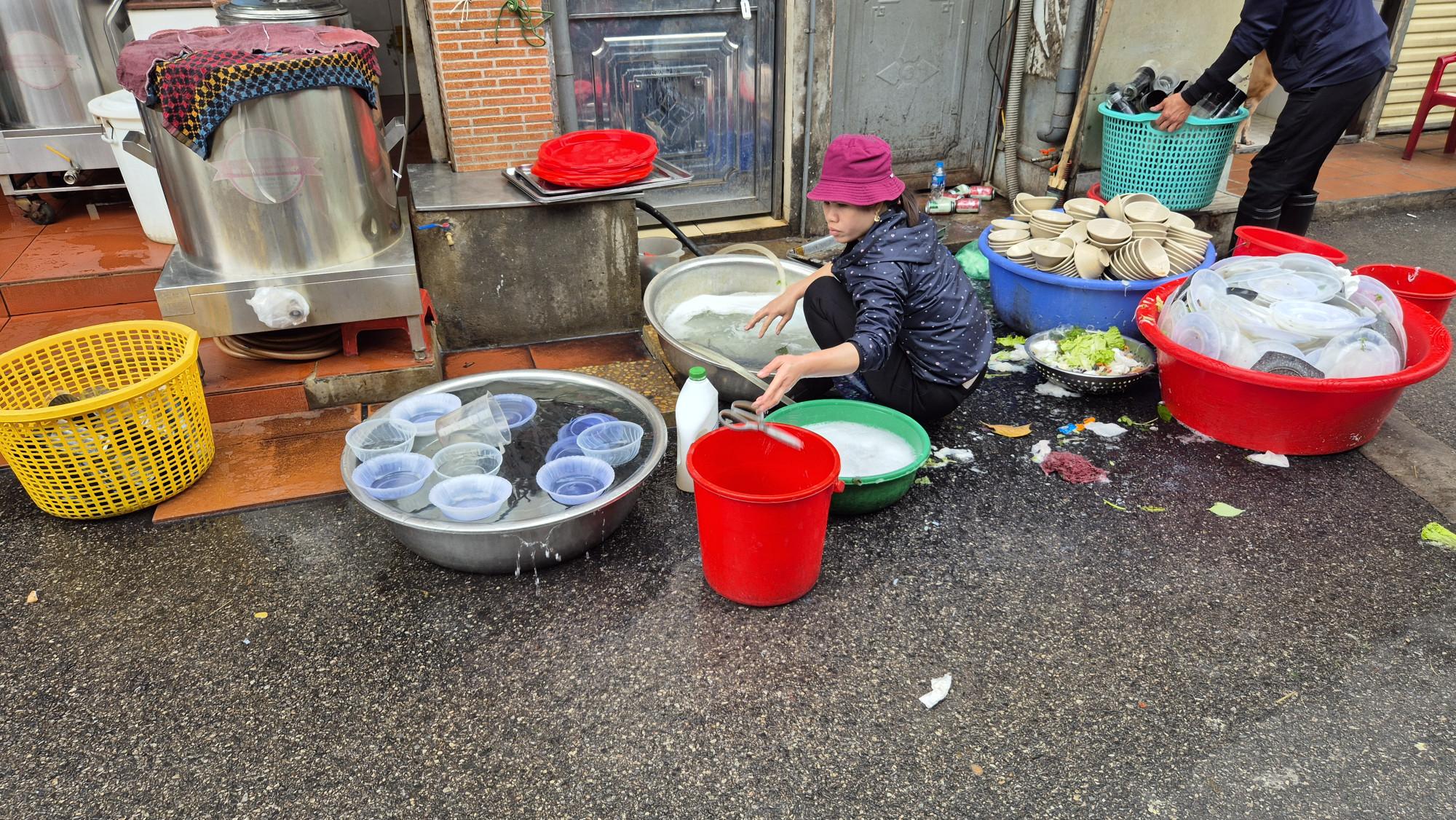 Zum Glück hatten wir in weiser Voraussicht in Hanoi (die Stadt innerhalb der Flüsse) im Hotel May de Ville Corner für 5 Nächte bereits vom 5.1.-9.1.ein Zimmer gebucht. D.h. Das Zimmer war bereit, eine warme Dusche, bisschen Ruhen und Café trinken. Dieses Hotel wird von uns vo.a. wegen der zentralen ruhigen Lage, sowie dem ausgiebigen Frühstücksbuffet im 13. OG in Erinnerung bleiben. Das Wetter war in der Zwischenzeit eher zu kühl um den Dach Pool zu benützen, dafür wirkten die Bistrotischchen mit Blick über die ganze Stadt umso einladender um ein Café zu trinken.